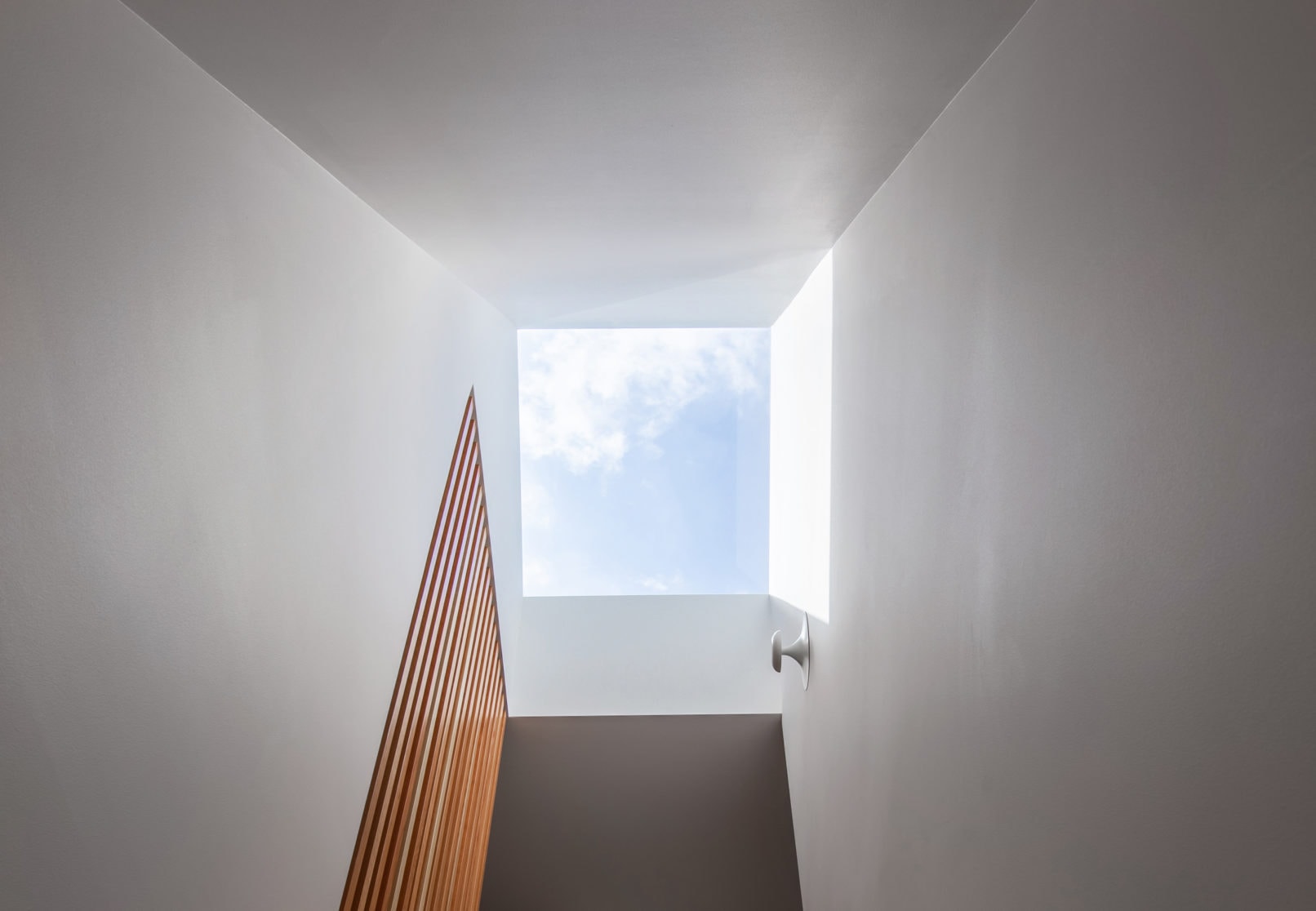 To expand the master suite, a small addition was added on both levels to the furthest extent of the roof. This bump out added volume to both the master bedroom and bath, while simultaneously allowing for an office space on the lower level. Because the owners also hoped to improve connectivity between floor levels, SHED demolished the walls that concealed the central stair. To make the experience of moving between floors memorable as well as functional, SHED placed a large, operable skylight at the top of the stair to bring light down through house levels while allowing warm air to escape and passively cool the house. The vertical wood screen is another functional and aesthetic element that serves, at once, as guardrail and light filter to heighten the daily experience of light and shadow while moving through the home.