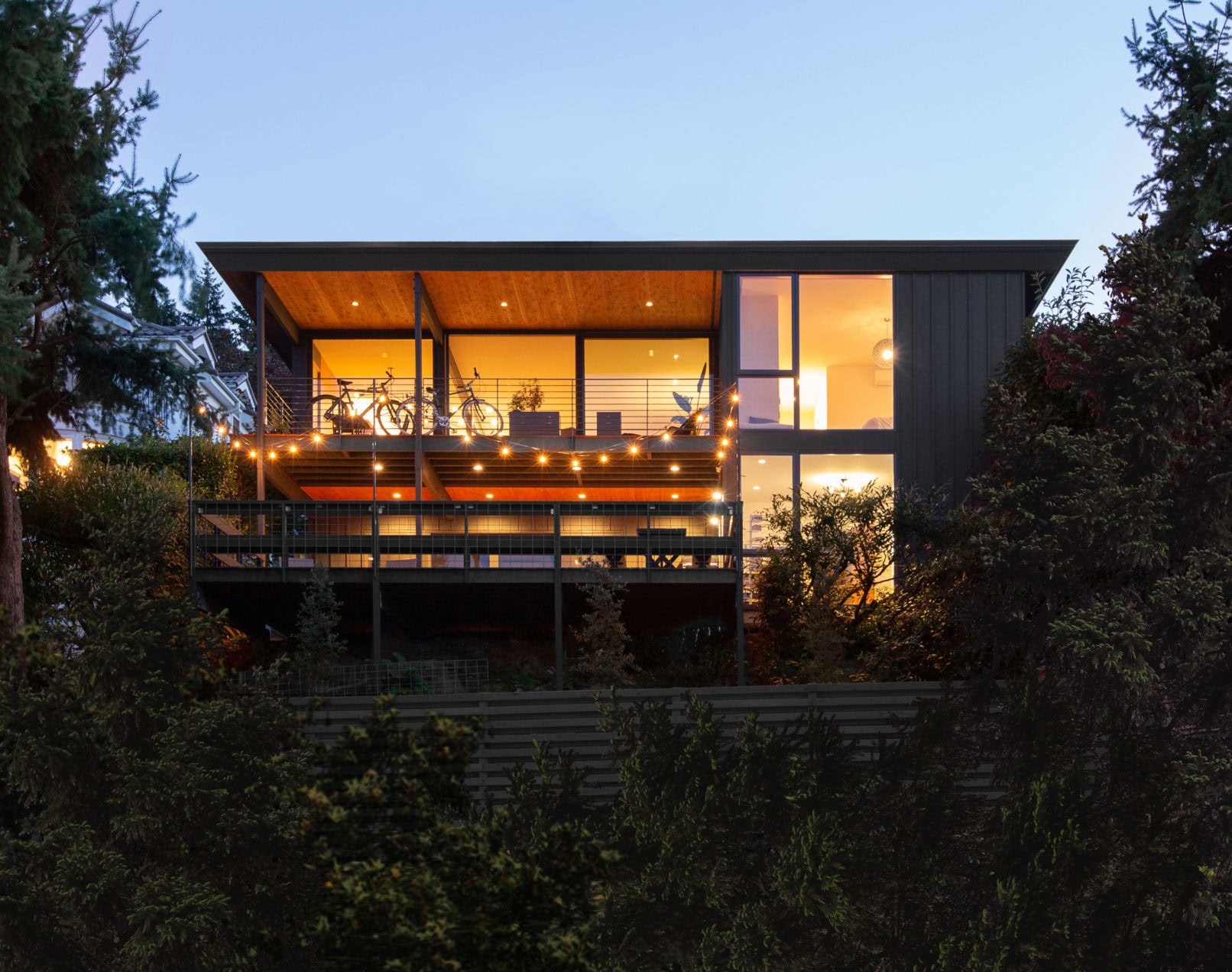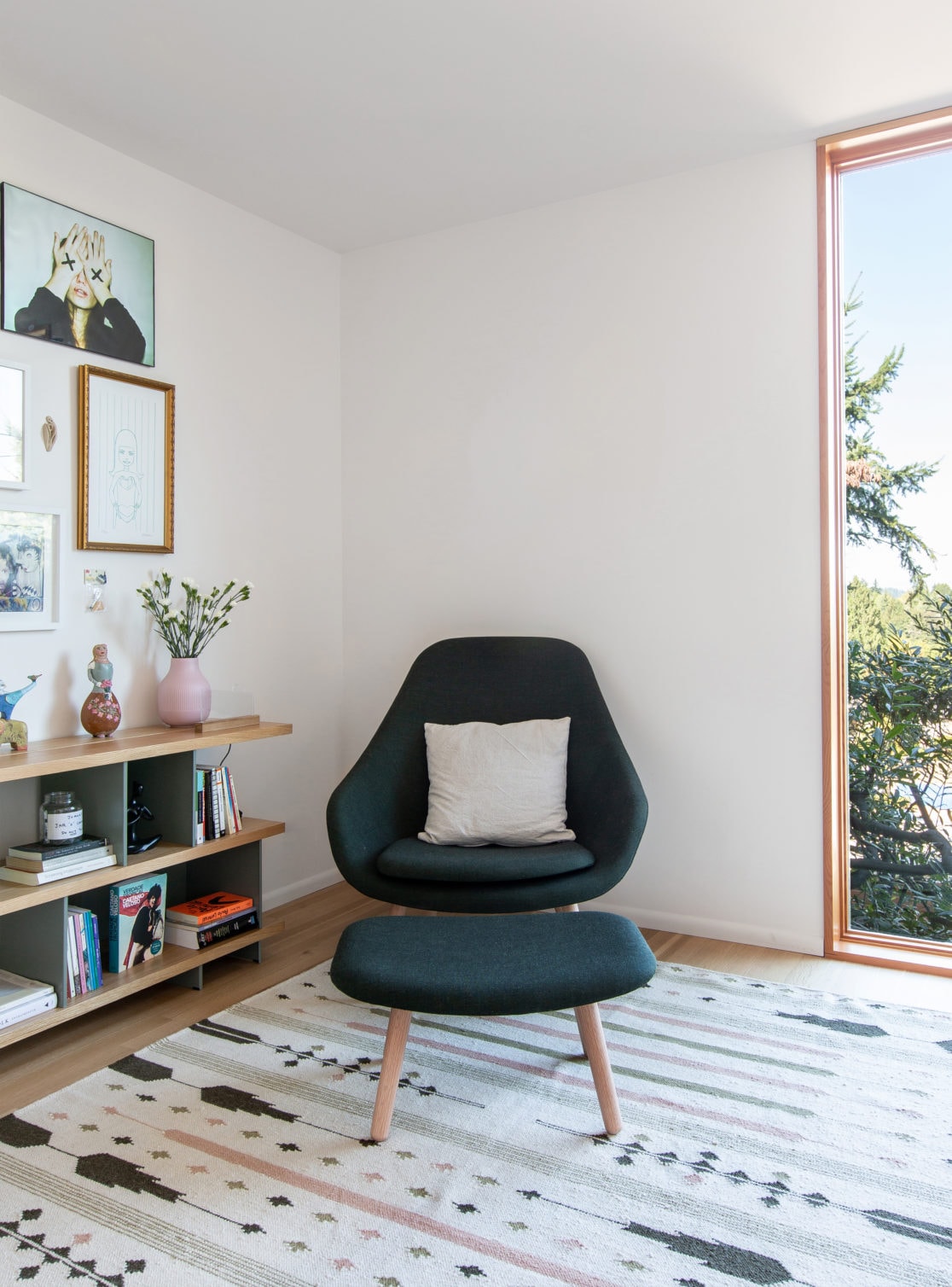 Originally designed for Irwin Caplan, the illustrator who designed the poster for the 1962 Seattle World’s Fair and cartoonist renowned for his “Famous Last Words” comic strip in The Saturday Evening Post, this mid-century home was both humble and grand–a modest one-story street facade harboring floor-to-ceiling windows with territorial views. The new owners bought the home directly from Caplan’s estate in hopes of settling their growing family into the residence conveniently located near public transportation and the Burke Gilman bike trail. But in order to accommodate the family, the mid-century home needed updating, remodeling, and fortifying–Seattle-based SHED Architecture & Design was selected to tackle the project.