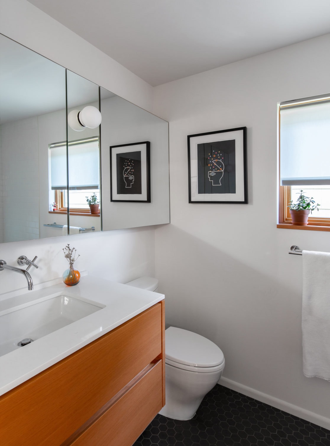 SHED’s significant interior transformation was essential, but targeted–a central design goal was to keep the home’s original character intact. The architecture team accomplished this by blending old and new seamlessly and applying minimal pressure to the original footprint–despite the addition of a bump out, the roof size was not extended. In the process of amplifying the integrity of the house, the team replaced all systems, upgraded the building envelope and fortified its structure. The result is a modernized mid-century home that pays effortless homage to its rich history while getting ready for a new era of family life.