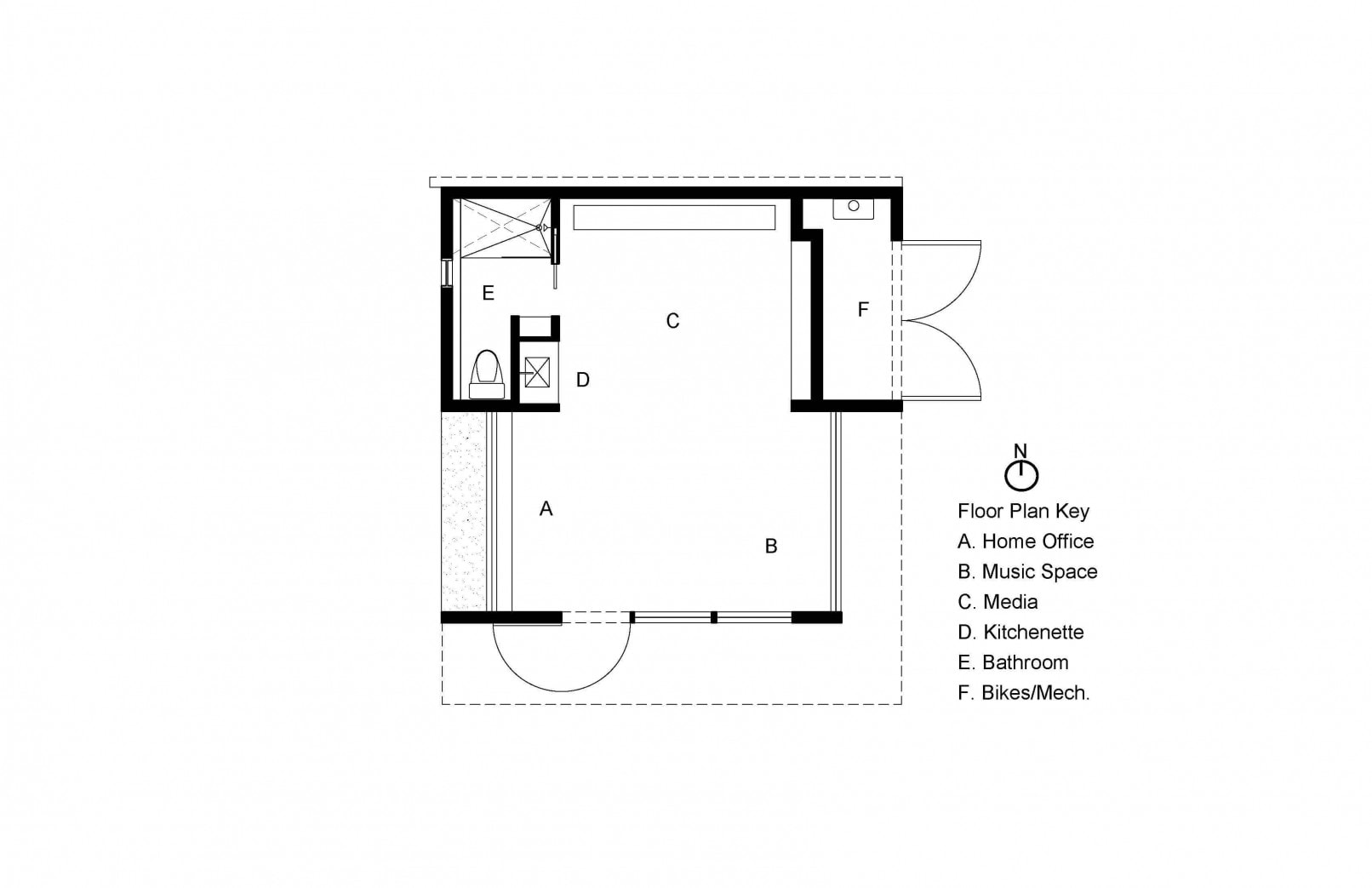 The new structure was designed to be flexible, well-lit and modern to create a comfortable space for a home office, guest house, and music studio.