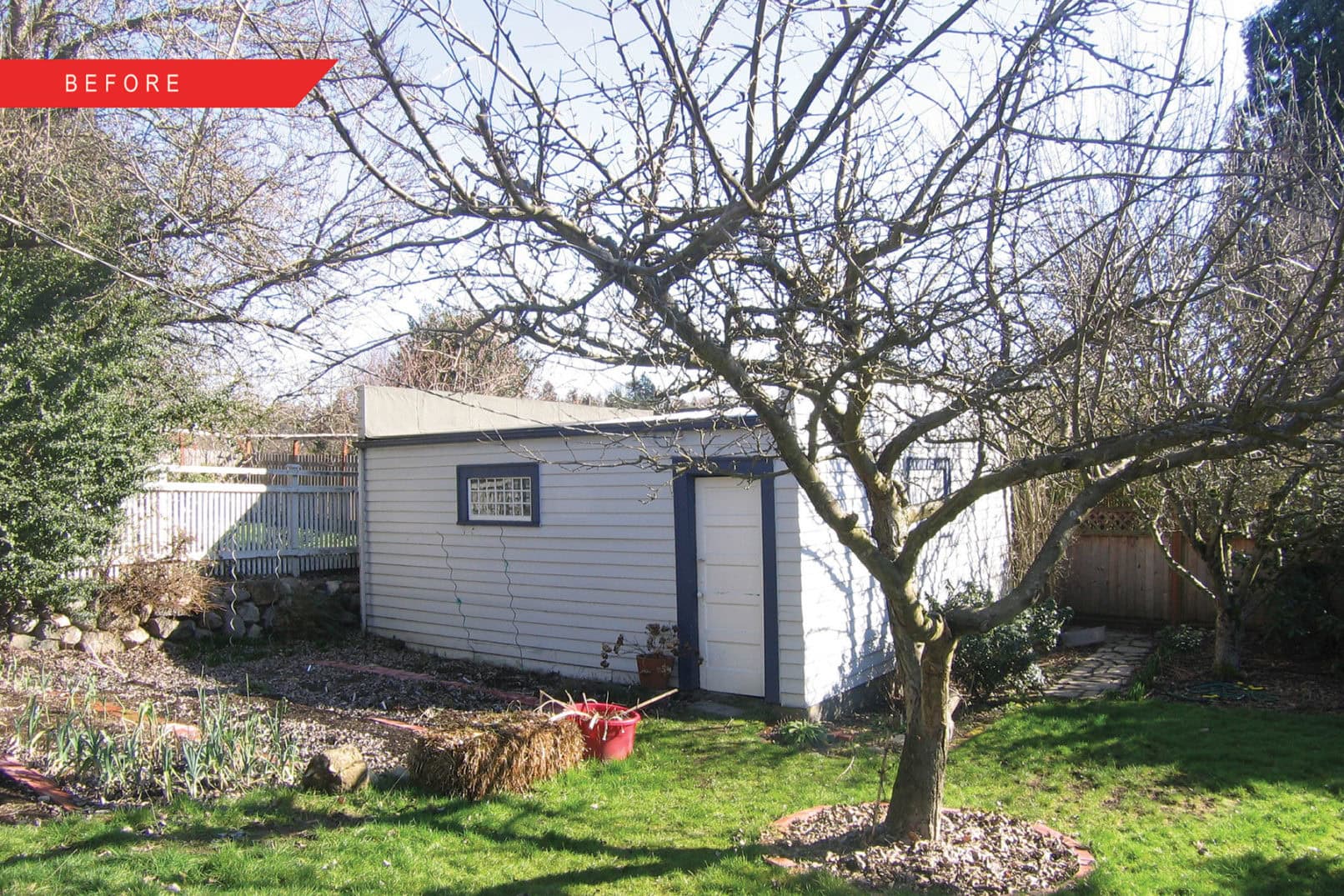This small modern studio sits in the back yard of a traditional Seattle 4-square house on the footprint of the former garage.