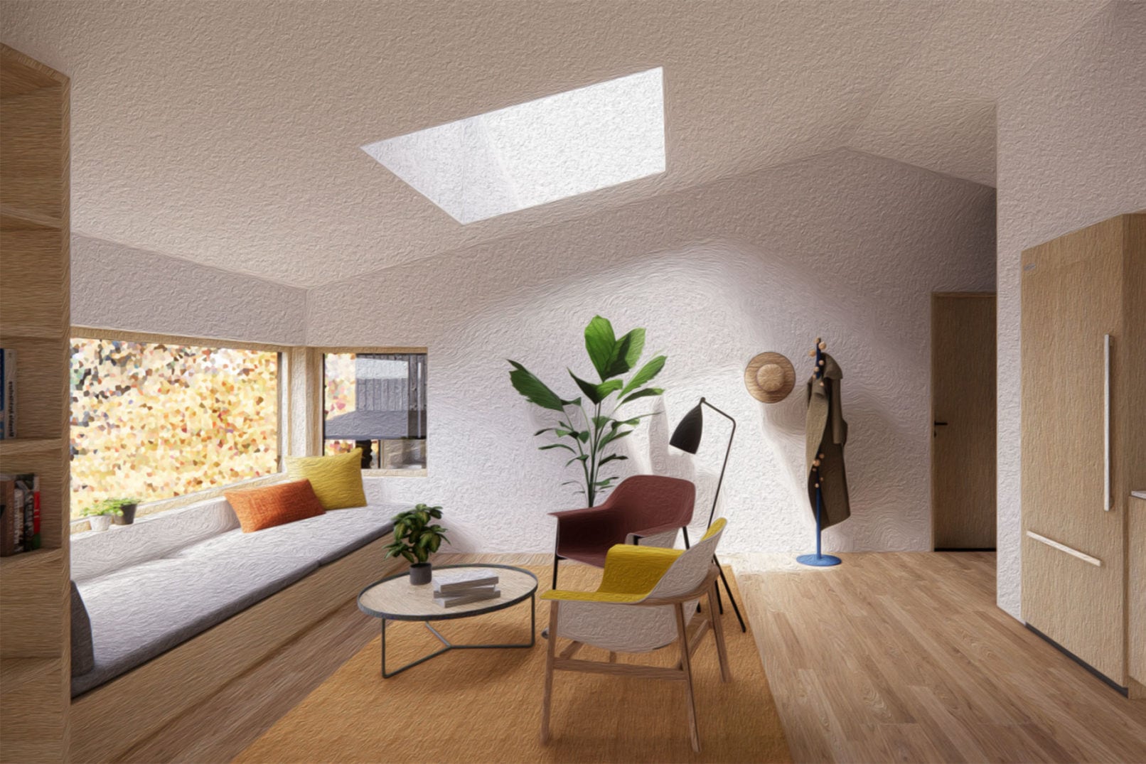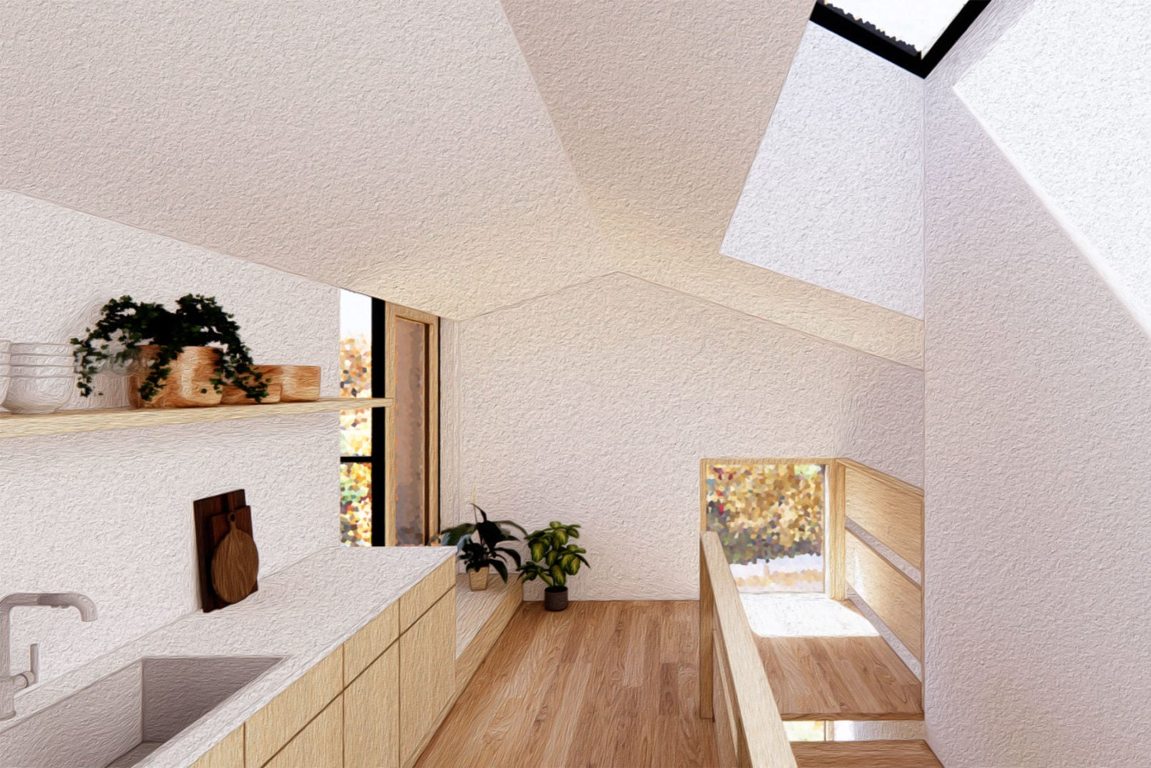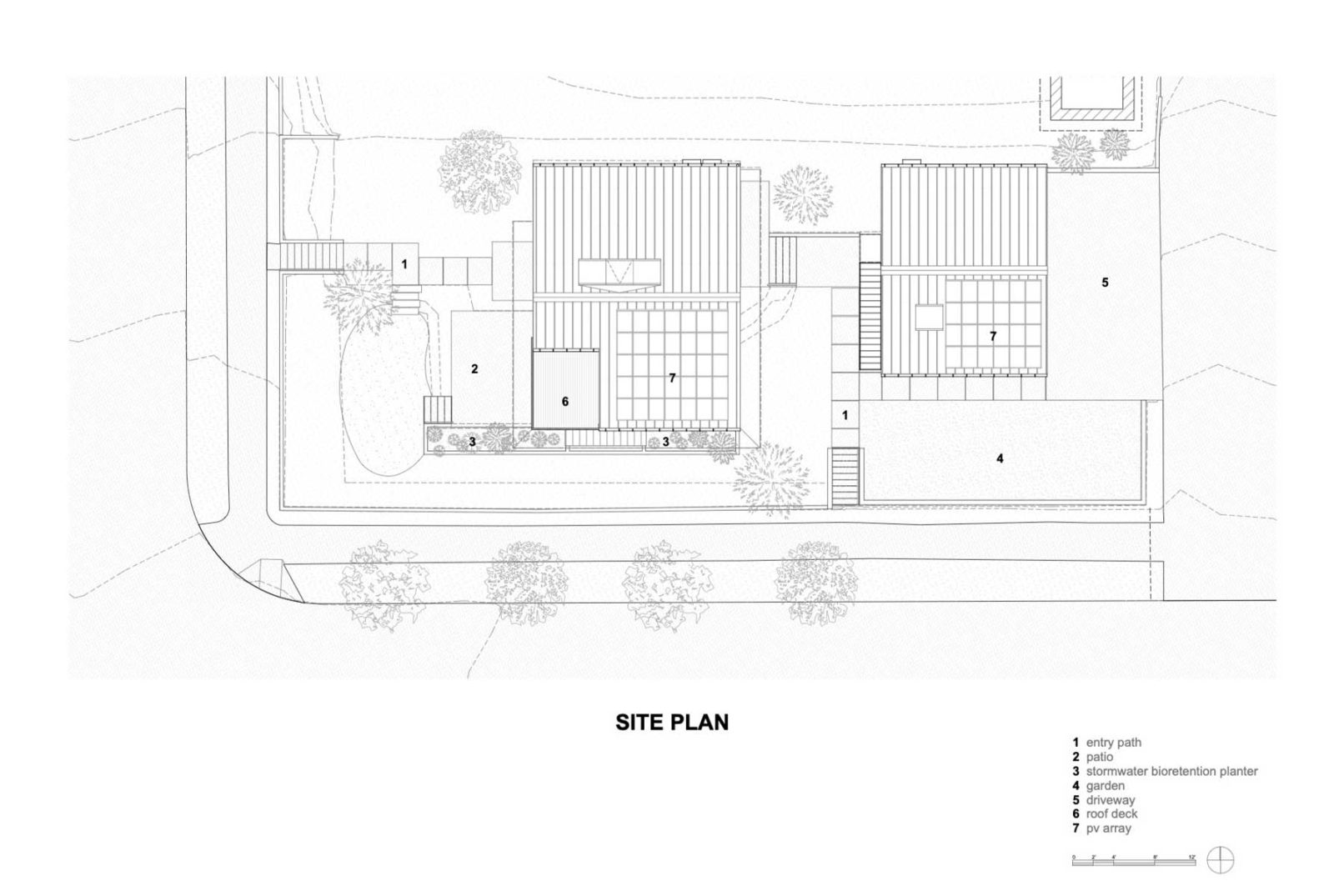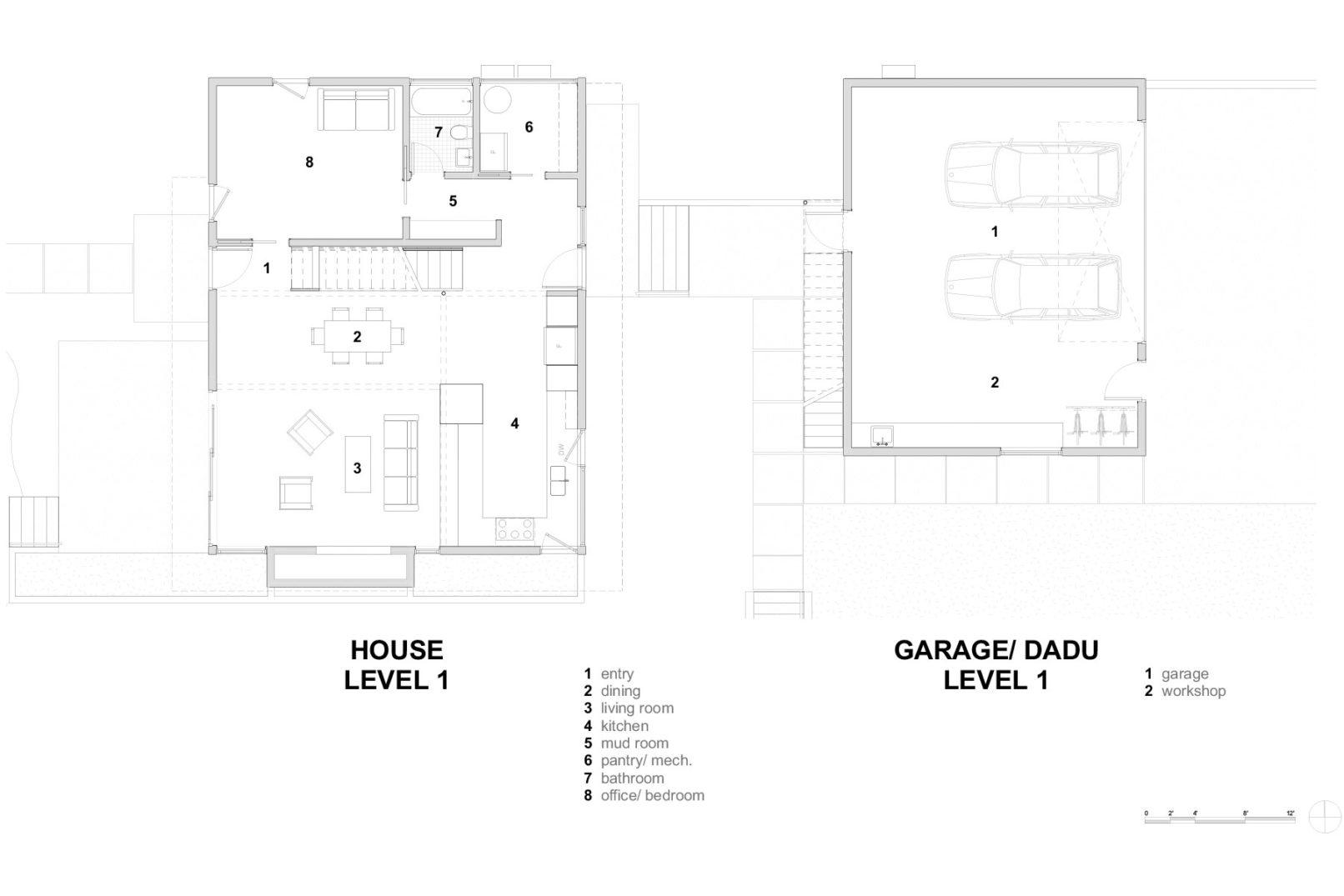 Preview of a compact house and DADU located in the West Seattle Junction neighborhood. Targeting Net Zero energy use, twin gable structures, a 2,130 square foot house, and 650 square foot DADU and garage are situated to create a series of outdoor rooms for socializing, gardening, and tinkering.